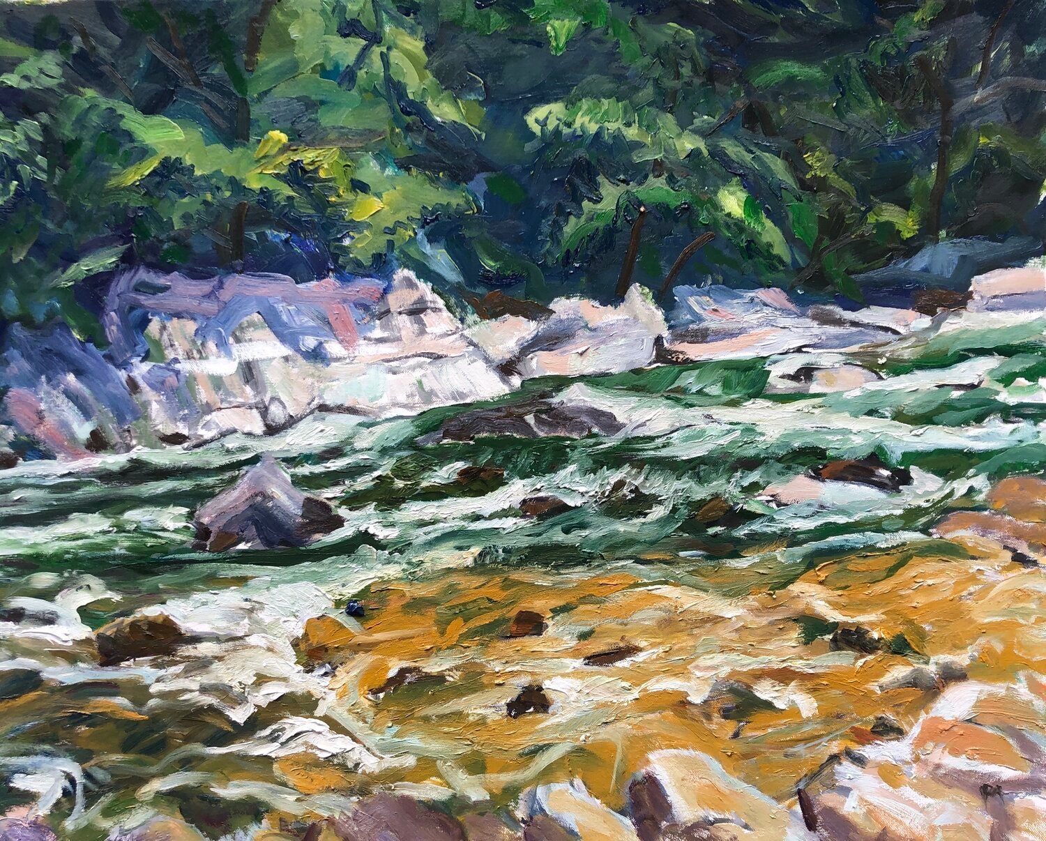 French Broad at Hot Springs, 2023, oil on canvas, 24” x 36”